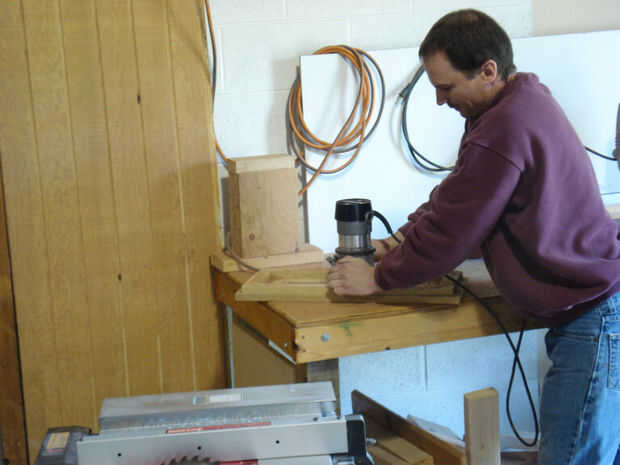 Usando el accesorio y el router, corte la ranura en la parte posterior del portacuchillos. Asegúrese de ajustar la profundidad adecuada para dejar el espesor deseado de la madera. Salimos de 1/16" espesor de la madera restante.