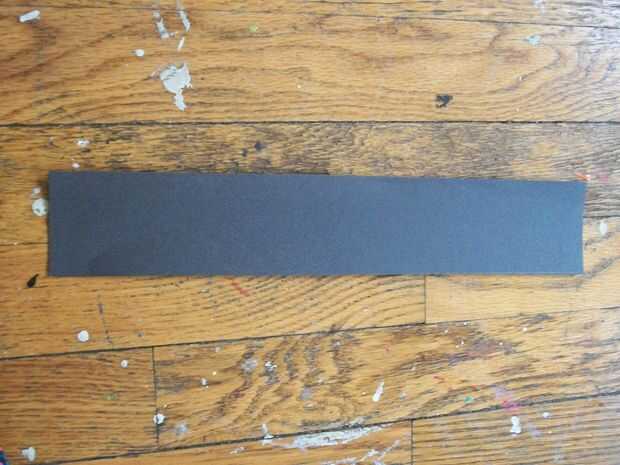 Ahora, para el enlace, mida y corte un pedazo de cartulina negra a alrededor de un 1 x de la longitud determinada de su portátil. Mi papel mide 10,5 pulgadas.