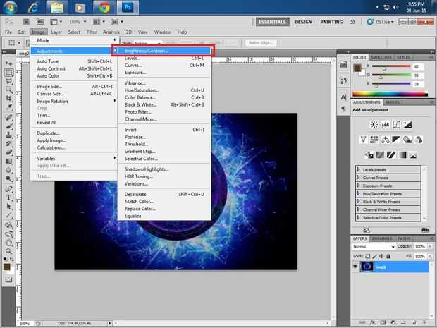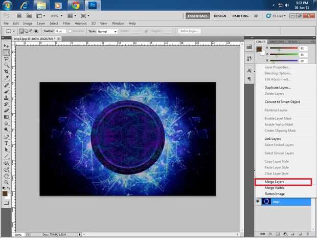 5. Después de combinar si lo desea puede cambiar el brillo de la capa.