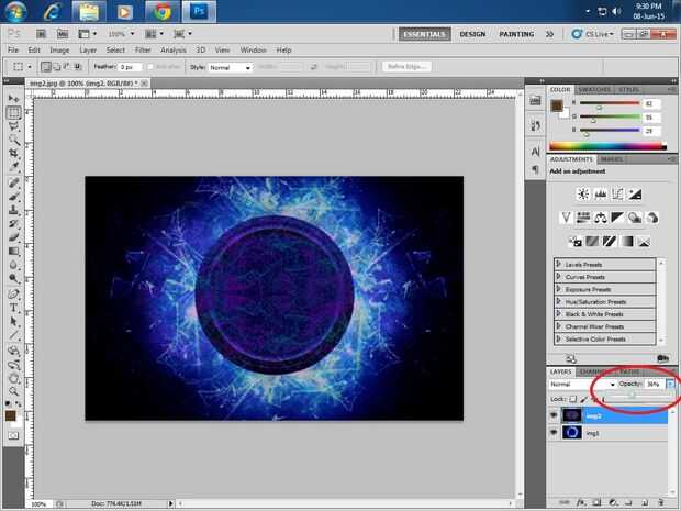 3. Después de organizar las capas en orden, reducir la opacidad de la segunda capa (Img2) como se muestra en la segunda imagen de este paso.