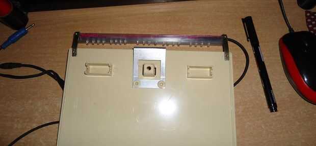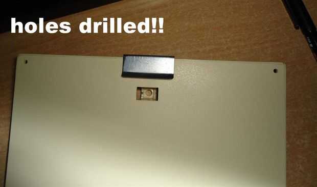 Dos agujeros entonces se perforaron en la parte superior el portadocumentos y luego se montó la banda.