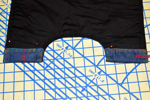 • Doble los extremos de los círculos de 1-1/2 pulgadas y pin. El velcro debe sostener un extremo para usted para que usted no necesita un pin