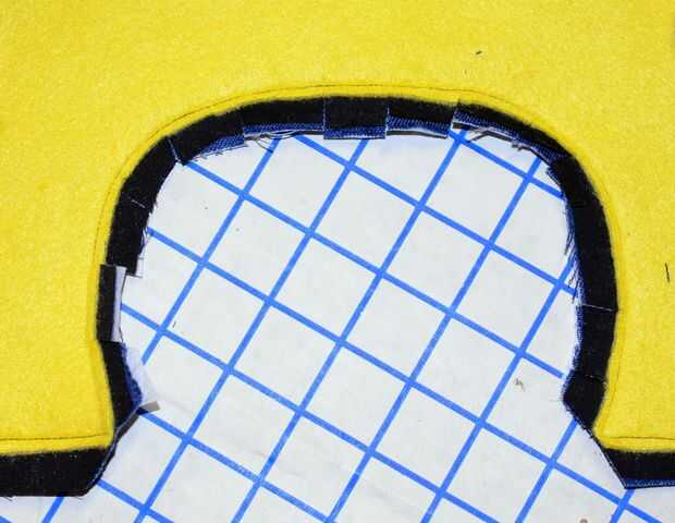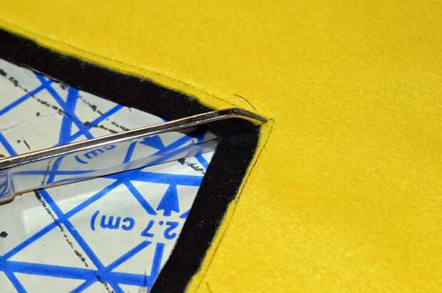- Recortar el aislamiento (forro polar amarillo en este caso) cerca de la costura