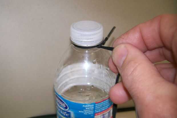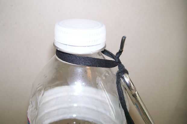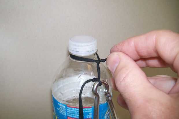 Deslice el nudo Arbor sobre el cuello de la botella de agua y apriete