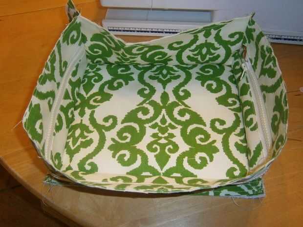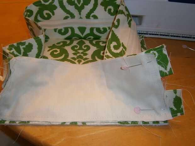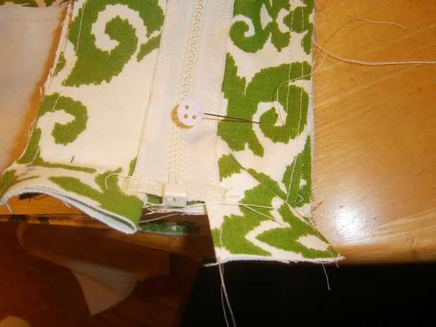 El participar no cremallera para el panel y alfileres a lo largo de los restantes largo lateral hacia la esquina. el perno por el lado corto en la esquina. una vez que haya determinado que debe satisfacer coserlas juntos a lo largo de este lado corto. Recorte cualquier exceso tejido a una 1/2", entonces usted puede seguir fijar el panel con cremallera a la parte superior.