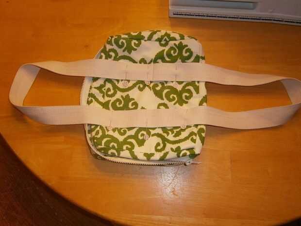 Prensa la costura abierta y bordes brutos en lugar boca abajo como se muestra. Arreglar en una cómoda posición equilibrada para su plato. la costura y el grito de la marca de la mitad ser paralelo. Ponerlos en el centro. Una vez que estés feliz con la colocación abierta el portador y coser la cinta hacia abajo a lo largo de cada lado solo en la parte inferior del transportador.