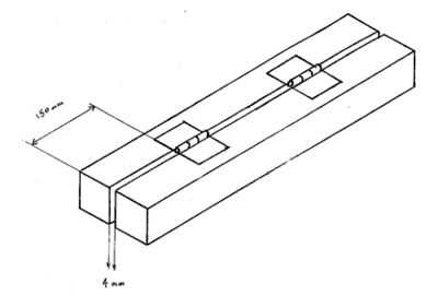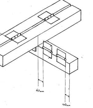 b) soldar bisagras entre las dos partes largas, 150 mm de cada extremo. Recuerde dejar un espacio de 4mm entre las longitudes (ver imagen 2)