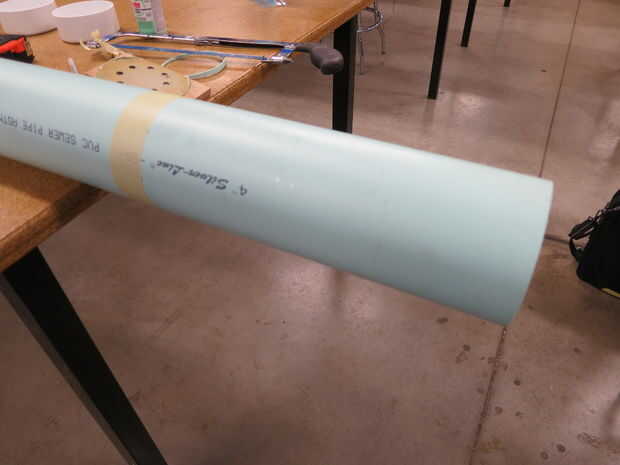 Medir un pie abajo de la tubería desde el extremo de corte cuadrado y marque con lápiz y cinta adhesiva.