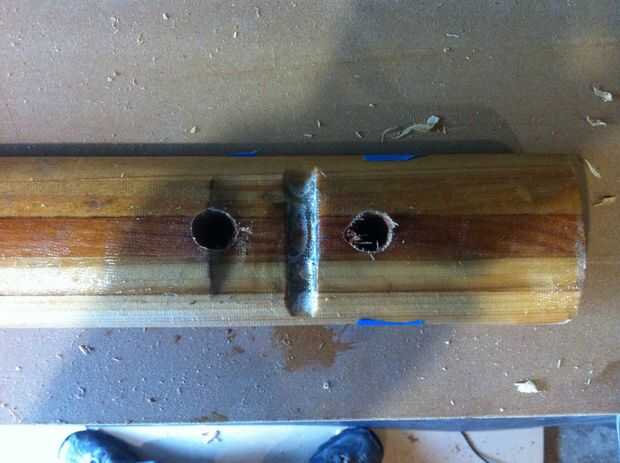 Cuando el epoxi haya curado corte cualquier taladro extra de fibra de vidrio los agujeros para los pernos en u. Utilizar la técnica del taladro de terraplén. Es-taladro un agujero grande, llenar con epoxy y luego perfore un agujero pequeño en el centro el relleno de epoxi. Esto sellará la madera y protegerla de cualquier daño por agua.