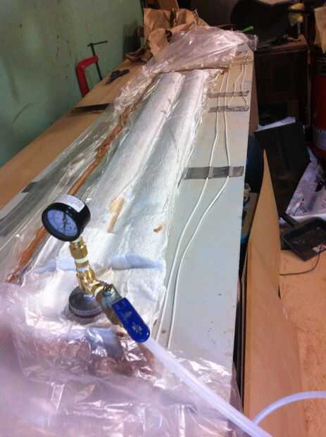 Si tienes una configuración de vacío, laminado su bares y fibra de vidrio en una bolsa de vacío. Una bolsa de vacío ayuda a empujar el compuesto a los rincones y recovecos de los bares. Si no tienes un vacío de empaquetamiento setup, usted puede poner encima de las barras a mano pero que tenga que hacer a un lado y luego el otro.