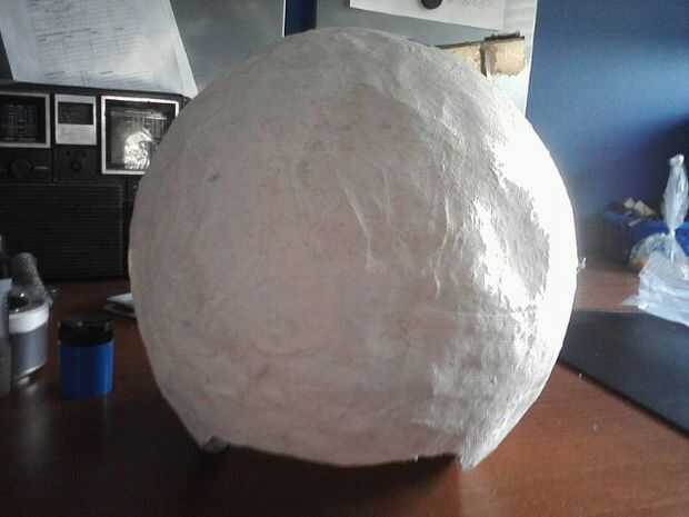 Tomaremos 2 tazas de harina y 2 tazas de agua y mezclar en un recipiente grande (si 2 tazas de cada uno no es suficiente para usted, usted puede agregar más de ambos ingredientes en una proporción 1: 1). Entonces tomamos un globo y golpe hacia arriba hasta que es ligeramente más grande que su cabeza. Empapar las hojas de nuestro papel en el agua de la harina y ellos la capa encima del globo-ADVERTENCIA, esto es un desorden tan intentar trabajar en un área le costumbre mente ensuciarse. En general necesita de 2 o 3 capas de papel maché. Deje un espacio en la parte inferior en el globo para el siguiente paso.