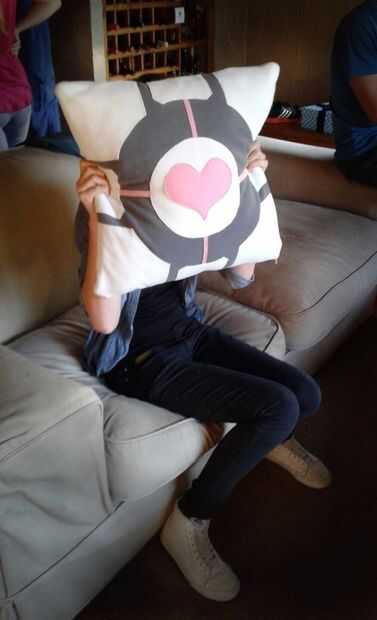 Para un Portal obsesionado (y cámara-tímido) amigo, hice este paño grueso y suave almohada de cubo de compañero. Sería una idea interesante para hacer un cubo con paneles 6 real de este patrón. Sin duda sería un bonito adorno.