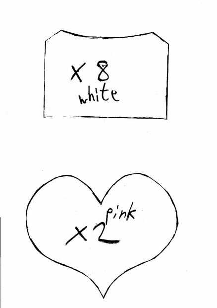- 4 tiras de 1 cm de ancho y 50 cm de largo corte de lana rosa (ningún patrón para esto pero es sencillo)