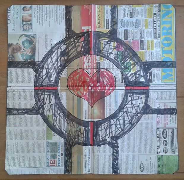- PIN corazón y círculo para el centro de la Plaza, coser alrededor del borde del círculo para garantizar.