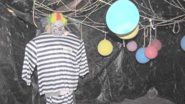 esta habitación fue perseguida por el joven hijo de mutantes tóxicos en un traje todo negro con capucha, pintura fluorescente se asperjó el plástico negro y el chico en traje, aun sabiendo que estaba allí no podíamos verlo. Kade algunos de los mejores sustos de la semana, asustando incluso a varios amigos de haunter profesional que vino a través, de su madre ayudó proporcionando una distracción con la marioneta de sonido más escalofriante jamás, la muñeca vino floja y le persiguió en un pasillo corto que parece estar bloqueado