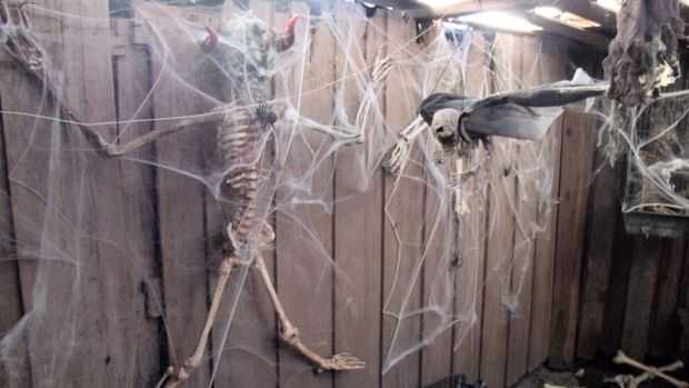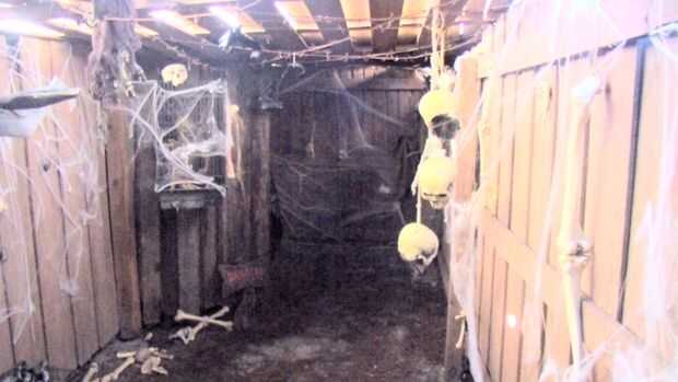 esta habitación es realmente más de un pasillo amplio pero uno de mis actores quiso lo rondan, colgó varios huesos y se hizo el pequeño vuelo ghoul mueva a lo largo de una línea de zip, tiene un ángulo de la pared al final para lanzar varios pies y otra vuelta de tuerca a la guarida