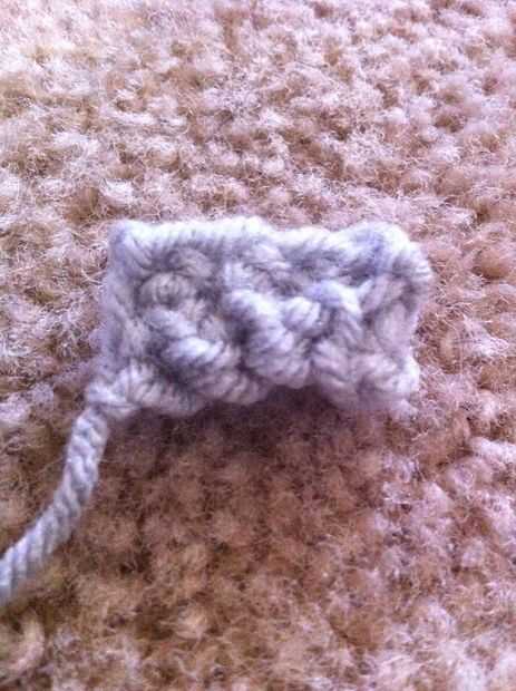 Fila 2: ch 2, d.c. 1, canal 2 y sl, repetir dos veces más