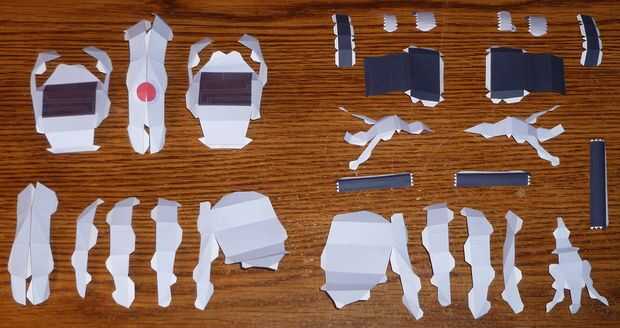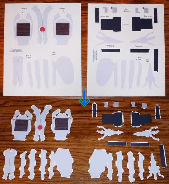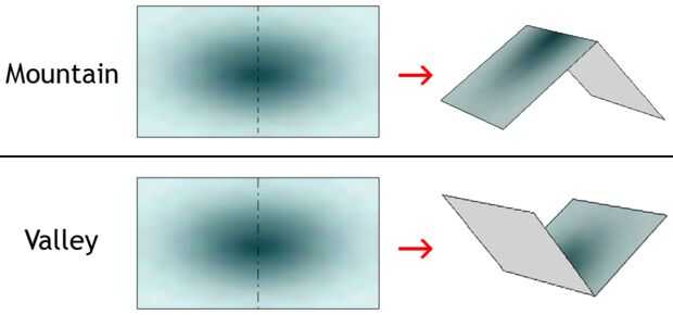 Existen 2 dos tipos de líneas de pliegue: líneas de montaña y Valle (Foto #2). Una vez doblado, deben buscar sus piezas como lo hacen en la foto #3. Tenga en cuenta que las líneas de separación de las fichas del resto de la pieza deben ser dobladas, también.