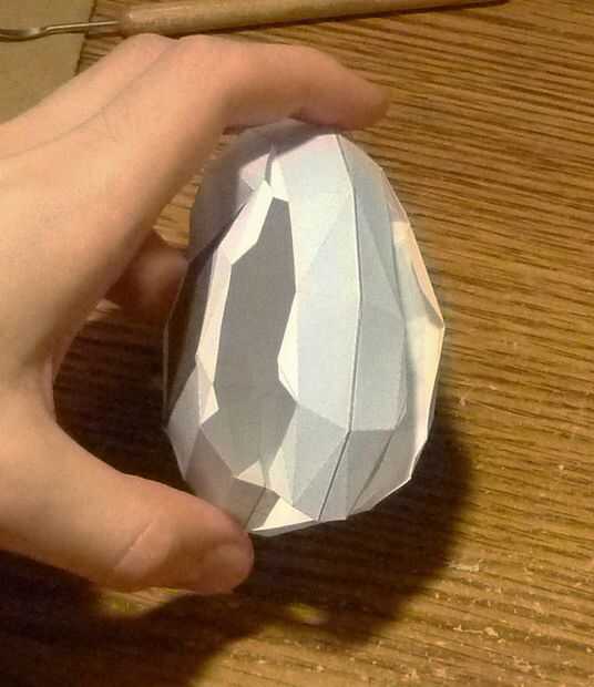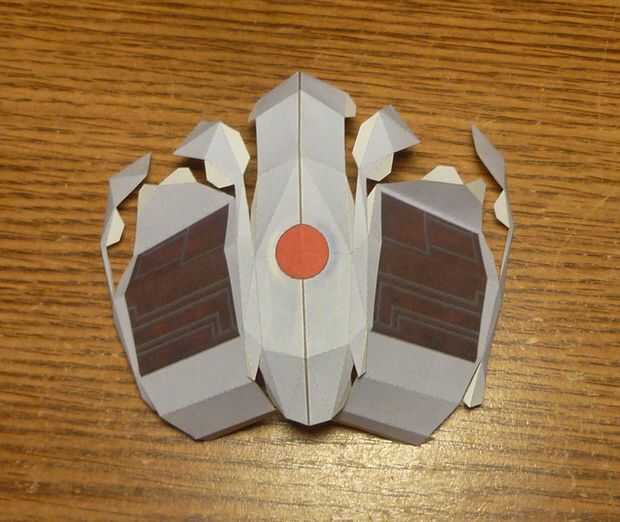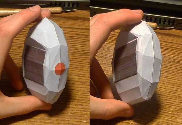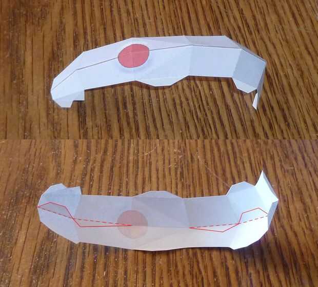 El cierre de la parte posterior con la pieza "D" es un poco más complicado. Como cerrar la parte trasera, se pone más difícil y más difícil llegar a las pestañas de dentro. Te recomiendo a partir de las dos pestañas superiores y trabajan a ambos lados uniformemente. Usted puede deslizar un clip o un palillo por el espacio que dejaste abierta en la parte inferior a las aletas (Foto #5).
