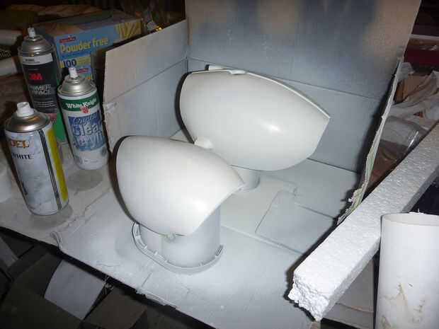 Porque las paredes eran tan delgadas, decidimos slushing algunos resina alrededor del interior ayudaría a reforzar las cubiertas. Utilizamos EasyCast Barnes que vino de un moldeado de local y una tienda de fundición. Cura a un blanco de color, por lo que no se verían fuera de lugar en los cuerpos de luz.