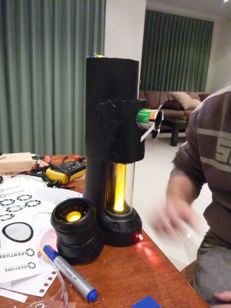 La carcasa trasera que efectivamente 'flotar'; así que el tubo de acrílico más grande hecho para un buen soporte. Hizo un buen trabajo, pero no tanto. Un montón de Araldite incorrectamente después de la medición y el apoyo fue total! (¡ tan mal!)