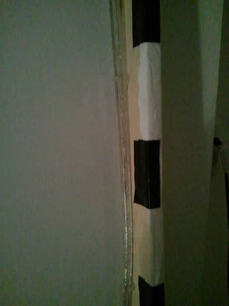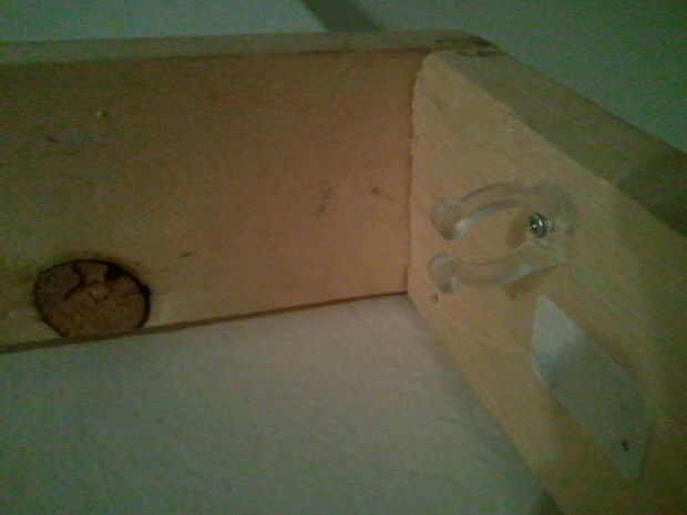 Luces LED de la cuerda que compré para este proyecto vino con sus propios clips de montaje pueden atornillarse en el marco. También usé unos ganchos roscados en las esquinas, porque tenían a la madera un poco mejores que lo de los tornillos pequeños en los clips. La luz de la cuerda fue montada cerca del frente del marco, apretado contra los costados. Como se verá más adelante, la frontera de la cinta cubre la parte de la hoja donde la luz brillaría a través de, por lo que la luz sólo cuando se está montado es la luz que refleja de la pared posterior.