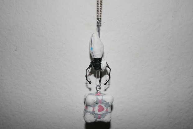 Si eres como los temas de prueba de la Aperture Science Computer-Aided centro, nunca quiere su apertura ciencia ponderado compañero cubo dejar su lado. Por eso hice este amuleto Companion Cube. Después de que el cubo fue terminado, no parece justo justo colgando de una cadena. Decidí que necesitaba algo apropiado manteniendo para arriba. El dispositivo de Portal Aperture Science mano era la elección obvia.