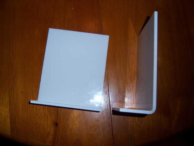 (Una vez más olvidé la cámara y no tiene ninguna foto de mí usar el calentador de tira lo siento) ahora usted necesita doblar el plástico. Usar el calentador de tira línea el acrílico con el alambre y dejarlo allí para cualquier cantidad de tiempo que la máquina te dice. (Mayoría de las máquinas le dirá cuánto tiempo debe tomar para ser flexible). Una vez que se convierte en curva flexible a través de la línea para crear un ángulo de 90 grados como en la imagen. tendrá que mantener en su lugar mientras el plástico se enfría.