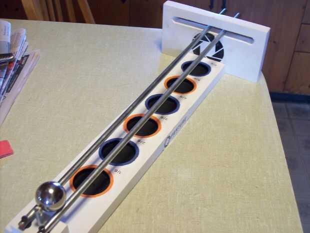 Hice un hoyo en uno juego con algunos restos de madera que tenía por ahí para proyectos como este. Se juega moviendo las barras de acero apartes y permitiendo que la bola ruede debido a la gravedad. Usé unas sierras diferentes y un taladro para hacer esto.