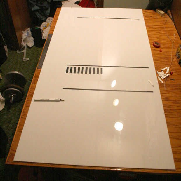 El vinilo tenía una rejilla en la parte posterior para que líneas rectas fueron fáciles. He medido las esquinas y hacían a mano por lo que emparejó las capturas de pantalla del juego.