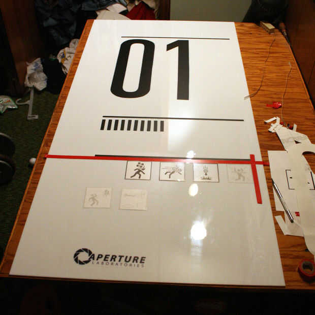 Luego buscó a través de la Wiki del Portal para encontrar los iconos de información de cámara que quería usar en mi signo. Usted puede elegir cualquiera de ellos como (o hacer su propio.) Elegí que unos estaban en gris y que eran negros y les impreso en el adhesivo transparente por lo que pude pegarlas en el cristal.