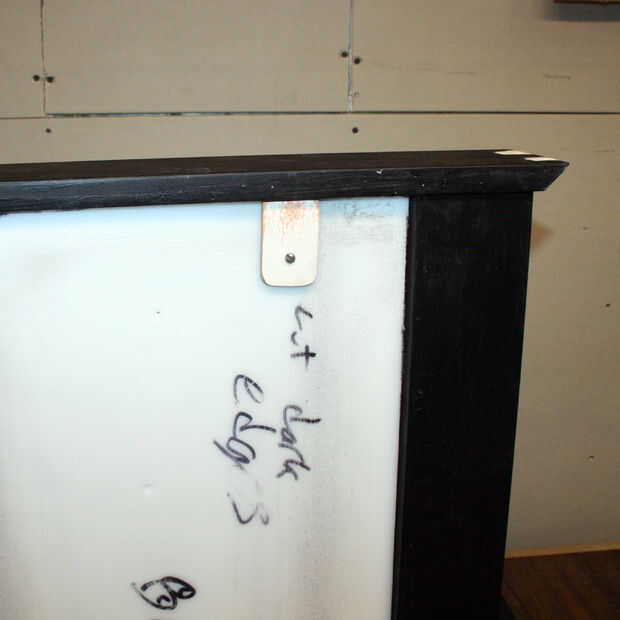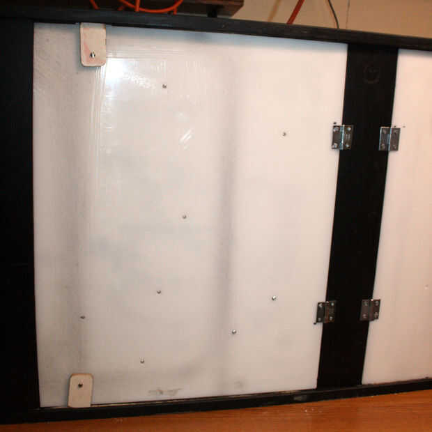Ya que tenía una ranura en ambos lados del marco solía algo delgada de madera actúan como bloqueos que hace pivotar para fijar el panel cerrado. Salirse de la ranura y se abre fácilmente.