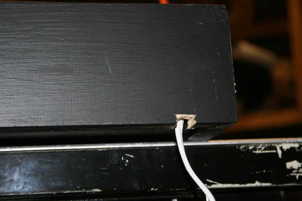 Alimenté el cable para el enchufe eléctrico a un pequeño agujero que cincelado en la parte inferior del marco.