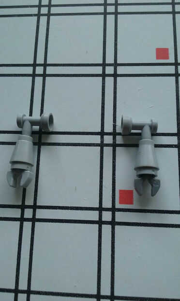 toma dos piezas de inyector y putt muy conos en la parte inferior de ellos y luego añade dos piezas de clip de la garra en demasiado la parte inferior de los conos.