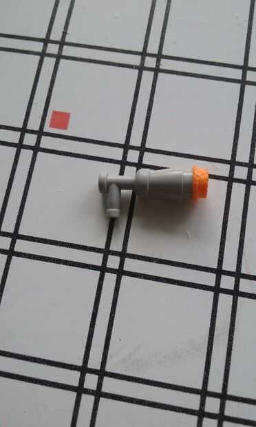 tomar una pieza de boquilla y añadir un cono luego agregar también un perno de naranja en la parte delantera de la pistola.