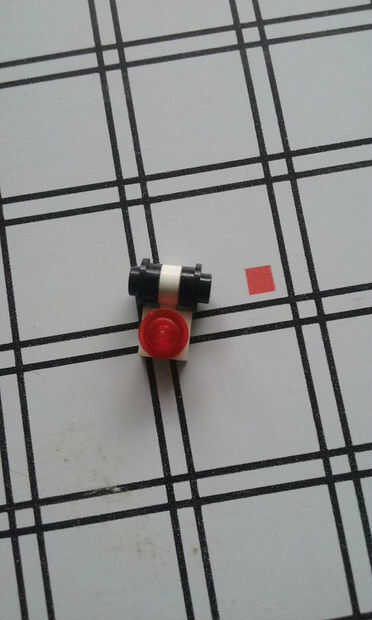 Primero tomar la pieza en el cuadro y agregar también un poste rojo claro sobre él. Luego tomar dos montantes negro y añadirlos también en los lados.