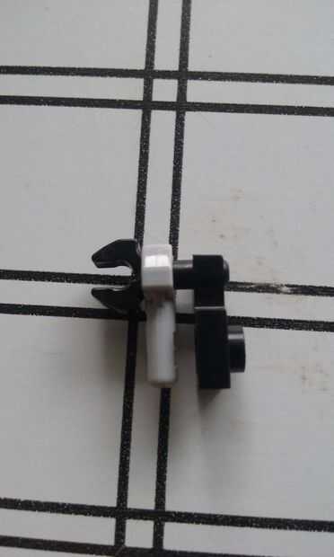 Tome un clip de la garra y luego tomar otro y clip en demasiado el primero de ellos. luego tomar stud clip y ponerlo también en el final de la segunda pieza de clip de la garra como se muestra.
