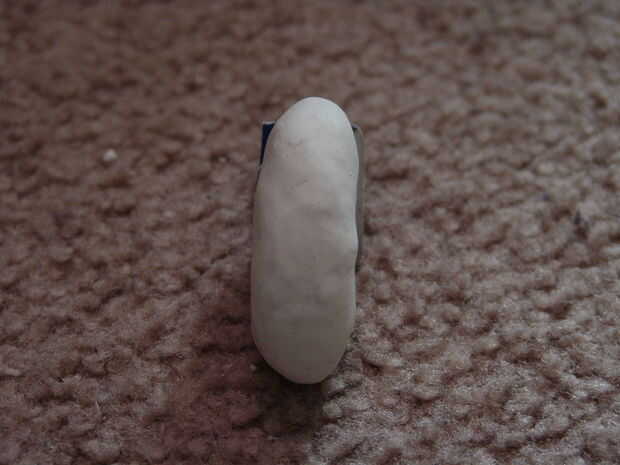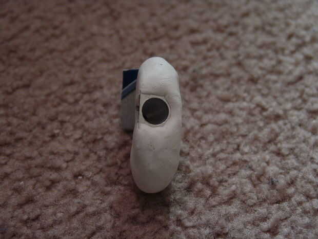 Primer color la parte delantera de su sacapuntas de lápiz con el rotulador rojo. Separar dos trocitos de arcilla, forma en óvalos, aplanarlos y luego meter dos agujeros como se ve arriba. Estos hacen los paneles laterales. Forma el cuerpo alrededor de los sacapuntas de lápiz y que el resto de la arcilla (dos palos más). Meter otros dos agujeros en el lado con arcilla y tres en la parte inferior. Esto es donde van las piernas. Una vez que lo forma, hornear en un horno a 275 por 5-10 minutos, luego dejan enfriar.