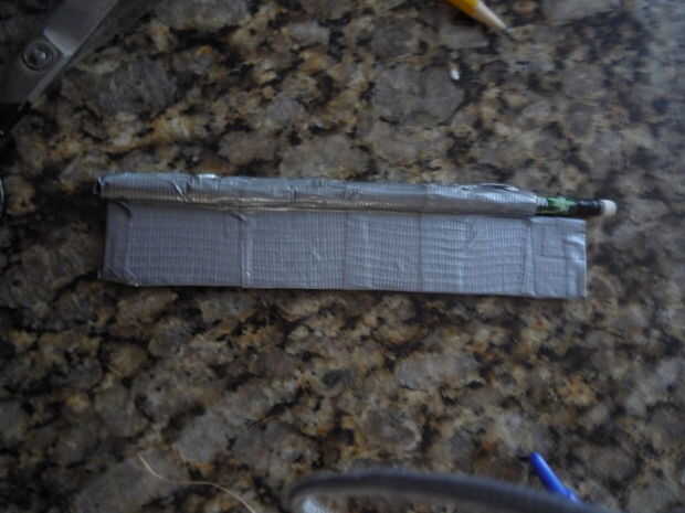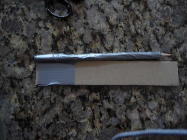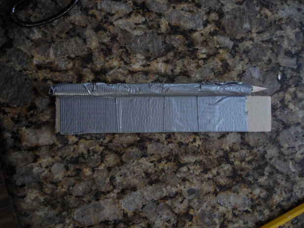 Empezar por el compartimento del lápiz y el cartón de embalaje juntos. Usted necesidad de un abrigo para un medio espesa de cartón. Si está utilizando una envoltura de cartón o papel de construcción realmente delgada en este 3 veces alrededor. Envuelva el vendaje hasta que el cartón está conectado en el compartimento del lápiz. Si ves cualquier cartón envuélvalo con pequeñas tiras de cinta adhesiva.