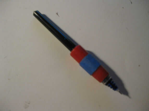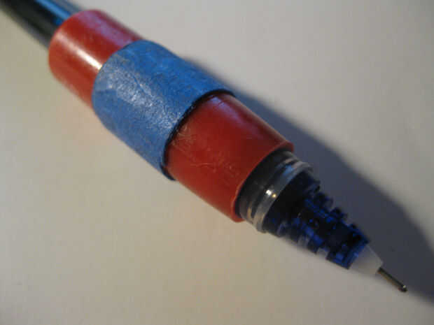 Puesto que las tapas de las plumas tienen las puntas cortadas y se grabó en su lugar usé algunos tubos de vacíos como casquillos nuevos. Estos tubos tenían originalmente cuchillas hobby en ellos pero encajan perfectamente las tapas de Sharpie.