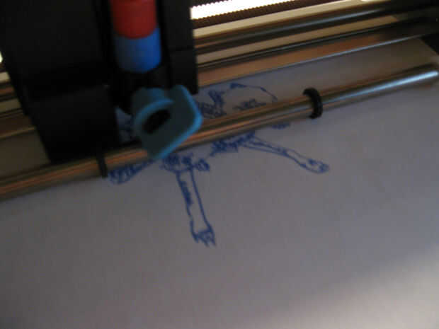 Después de unos tres perros de cabezas con la silueta de dibujo tengo una brillante idea-¿por qué combinar las plumas con el cortador?