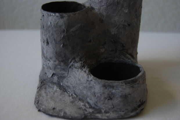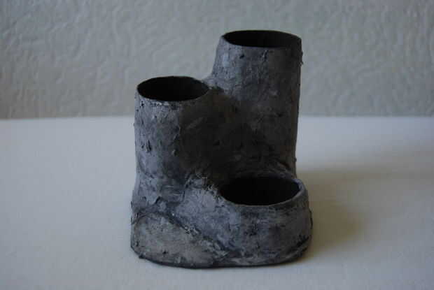 - Pintar el portalápices con un gris oscuro y dejar secar. -Que con una esponja y algún gris claro (casi con) punto la pintura sobre el soporte de lápiz. -Pintar el interior del soporte del lápiz negro.