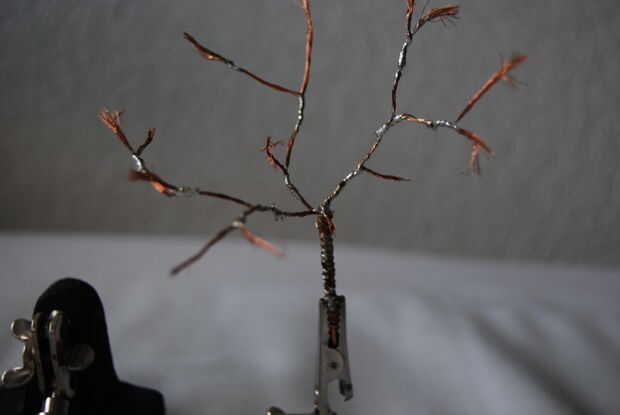 -Envuelva el cableado de cobre alrededor de la pequeña pieza de cobre.