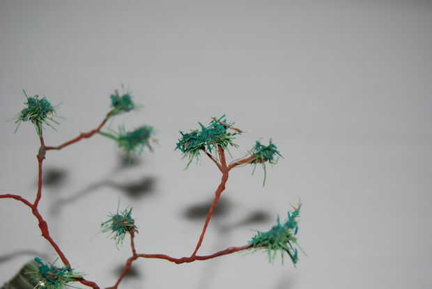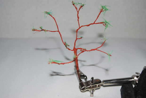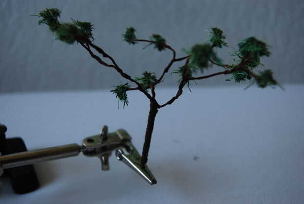 -Poner pegamento elemental en las piezas de cuerda verde y espolvorear algunos aserrín verde oscuro en él.