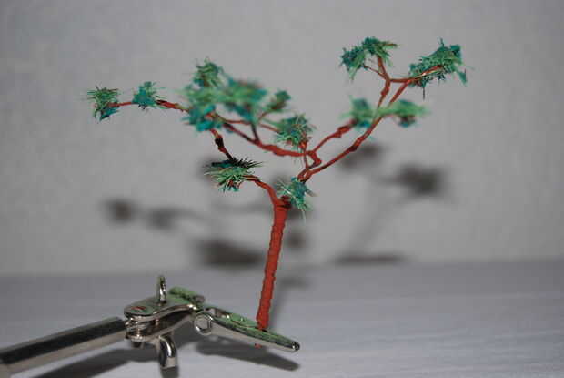 -Poner pegamento elemental en el serrín verde oscuro y espolvorear algunos aserrín verde luz en él.