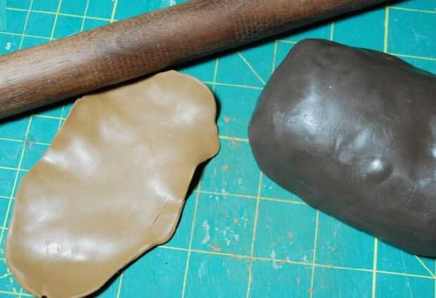 • Roll out de arcilla marrón oscuro en cerca de 1/4" hojas lo suficientemente grandes a cubierta cuerpo y cabeza