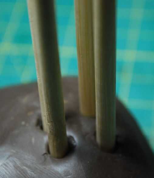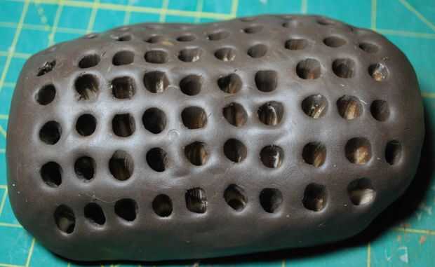 Un paso más antes de hornear.  Basta con hacer los agujeros para las plumas.