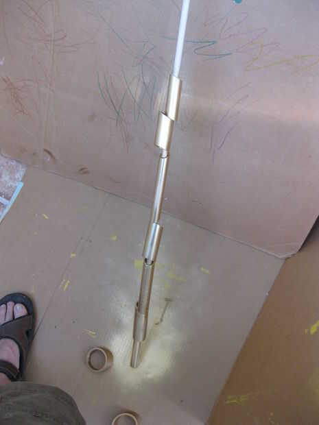Coloque todos los tubos en el extremo de una espiga de 1/2 pulgada. Esto hace fácil de pintura y secado. Podría esperar a que todo está montado y tratar de pintar luego, pero es imposible entrar en las grietas. Si pintas antes de que tendrá que pintar otra vez después de hacerlo para obtener la base y hacer un lustre agradable acabado. No intente conseguir pintura en los fondos que pegar.