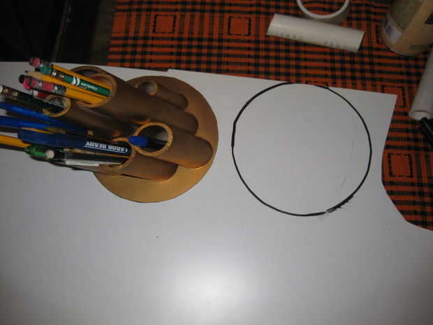 Utilizando algo redondo dibuje una hoja del círculo el PVC con un marcador usando un tazón de fuente para un patrón hacer agradable y redondo. Supongo que usted podría hacer la forma de casi cualquier cosa, pero me gusta la redondez que empareja la redondez de las tuberías. Pero que empareja la ovalidad del ángulo corte tuberías sería chévere también.