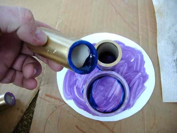Aplique una imprimación de PVC para el final de los tubos de PVC y la parte superior de la hoja del PVC que es ahora un círculo.